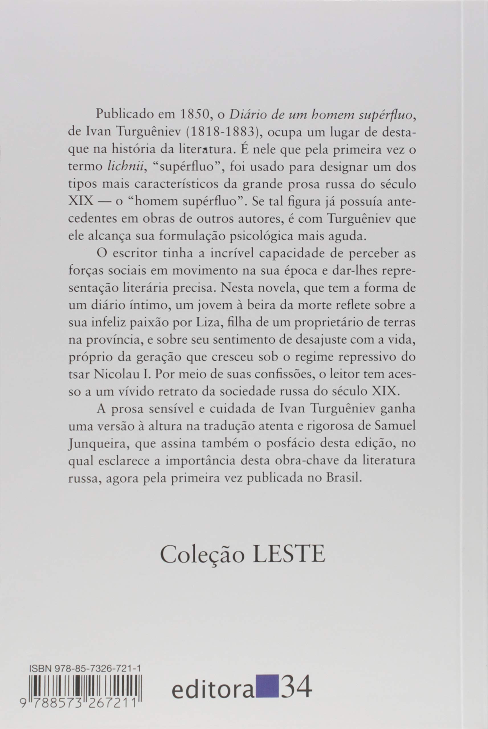 Publicado em 1850, o Diário de um homem supérfluo, de Ivan Turguêniev, ocupa um lugar de destaque na história da literatura. É nele que pela primeira vez o termo lichnii, “supérfluo”, foi usado para designar um dos tipos mais característicos da grande prosa russa do século XIX – o “homem supérfluo”. Se tal figura já possuía antecedentes em obras de outros autores, é com Turguêniev que ele alcança sua formulação psicológica mais aguda.