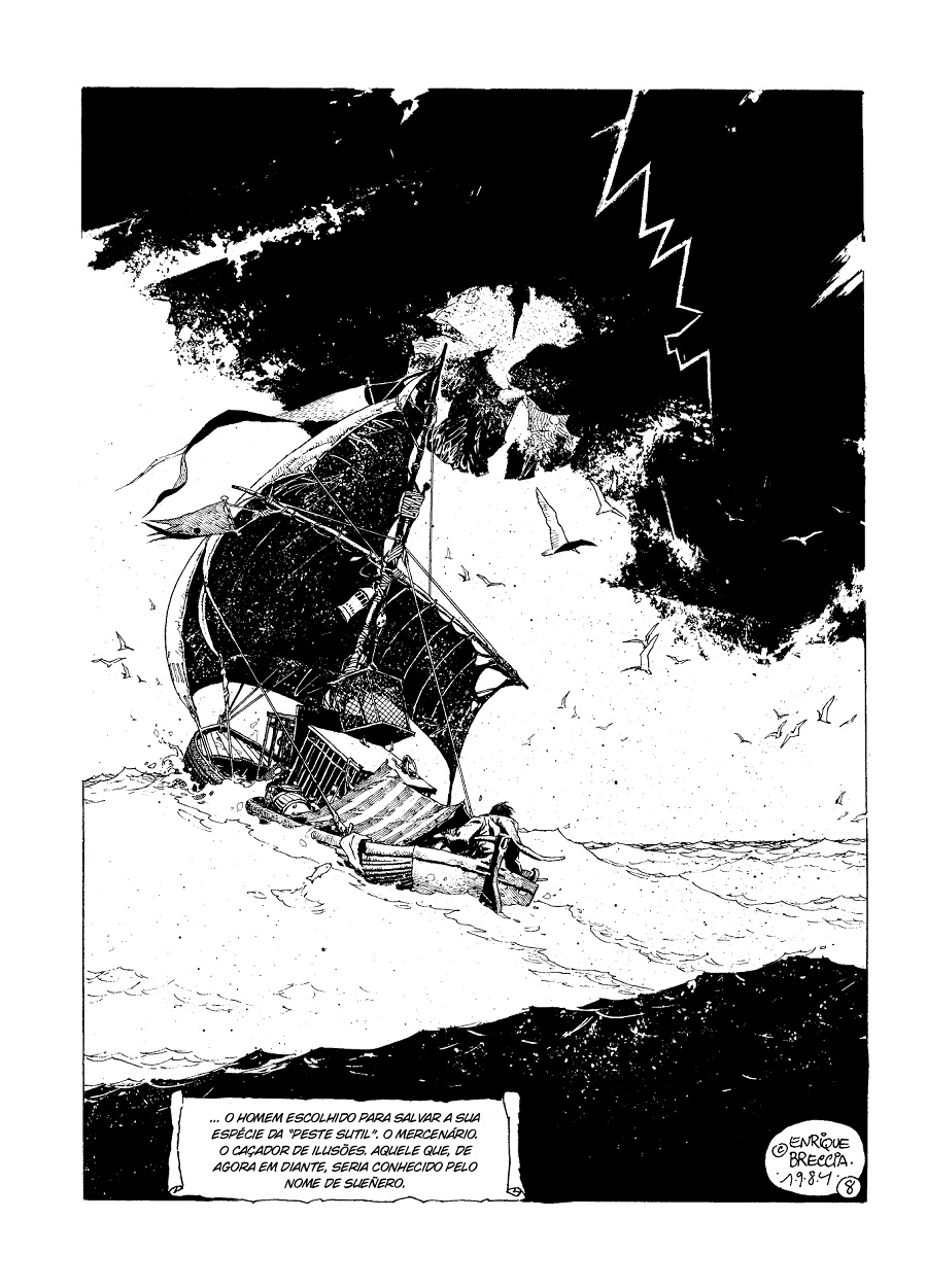 El Sueñero – O Sentinela dos Sonhos, não é somente a mais importante obra de Enrique Breccia, mas também umas das mais importantes das historietas argentinas e – por que não dizer – dos quadrinhos de toda a América Latina. Em um futuro distante, o mercenário conhecido como El Sueñero recebe a missão de recrutar peculiares figuras de diferentes épocas e lugares, como Mr. Hyde, o Minotauro, Jack estripador, etc. Uma obra memorável, um roteiro divertido, cínico e polêmico que ganha forma com o traço marcante de um dos mais reconhecidos quadrinistas vivos.