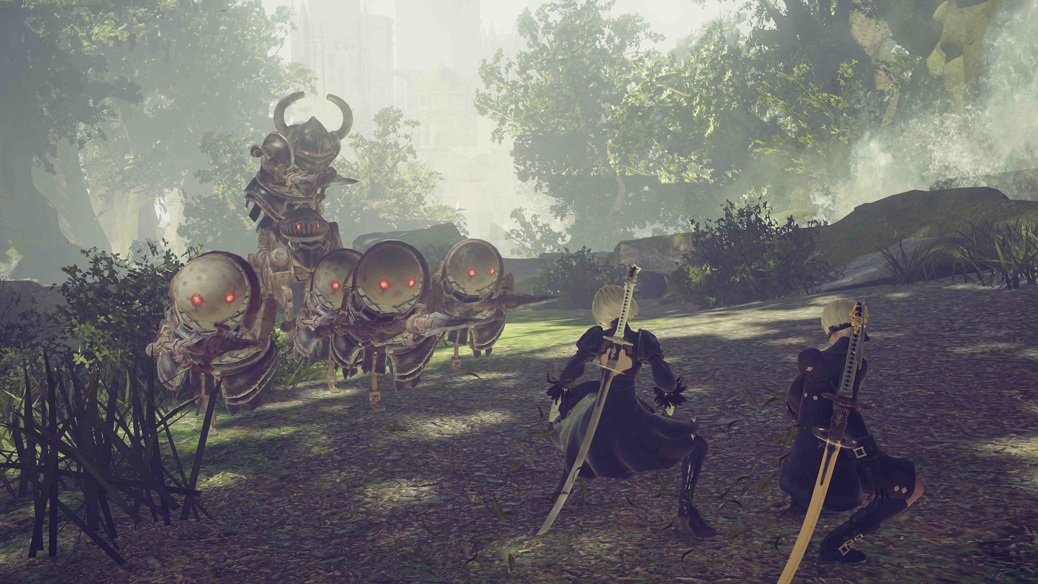 Em milhares de anos no futuro, a humanidade sofreu ataques massivos de formas de vida alienígenas que atacaram com força extrema usando maquinas como linha de frente na invasão, a guerra durou muito tempo, assim obrigando aos humanos sobreviventes fugirem em direção a lua, que abrigaria os remanescentes até que a força de resposta YoRHa, composta por um batalhão de androides que tem por função buscar e destruir qualquer força alienígena e assim libertar a Terra, para que a humanidade retorne e volte a sua glória. Vivenciando esse enredo, temos três personagens centrais, YoRHa Nº 2 Modelo B, ou simplesmente 2B, uma modelo feminina de androide de batalha YoRHa cuja principais características são sua calma e compostura. Ela é acompanhada por 9S (YoRHa Nº 9 Modelo S), um androide de reconhecimento que demonstra mais emoções do que outras unidades YoRHa, e é observada por A2 (YoRHa Modelo A Nº 2), um protótipo obsoleto da linhagem de 2B com uma personalidade taciturna que frequentemente escolhe agir por conta própria.