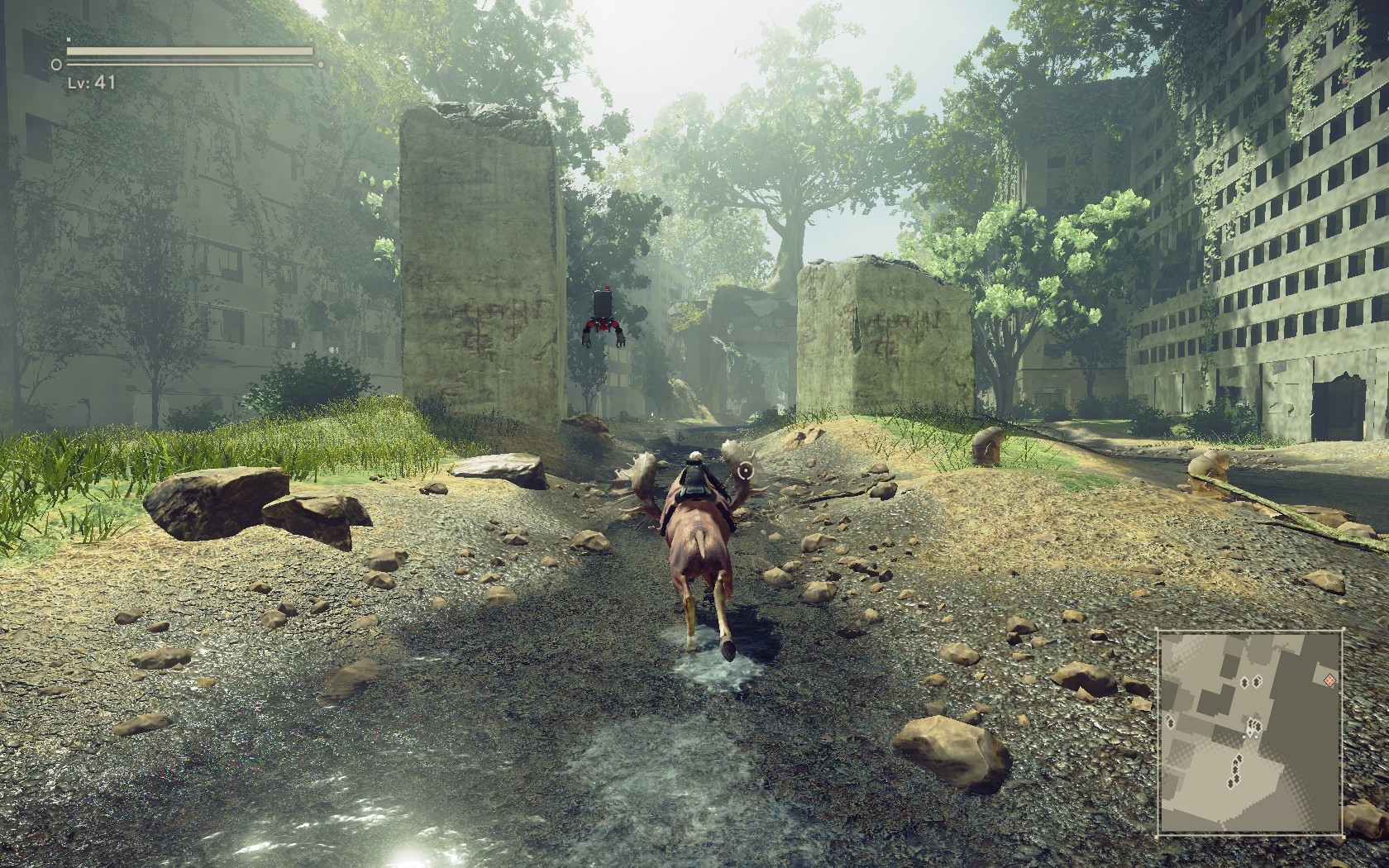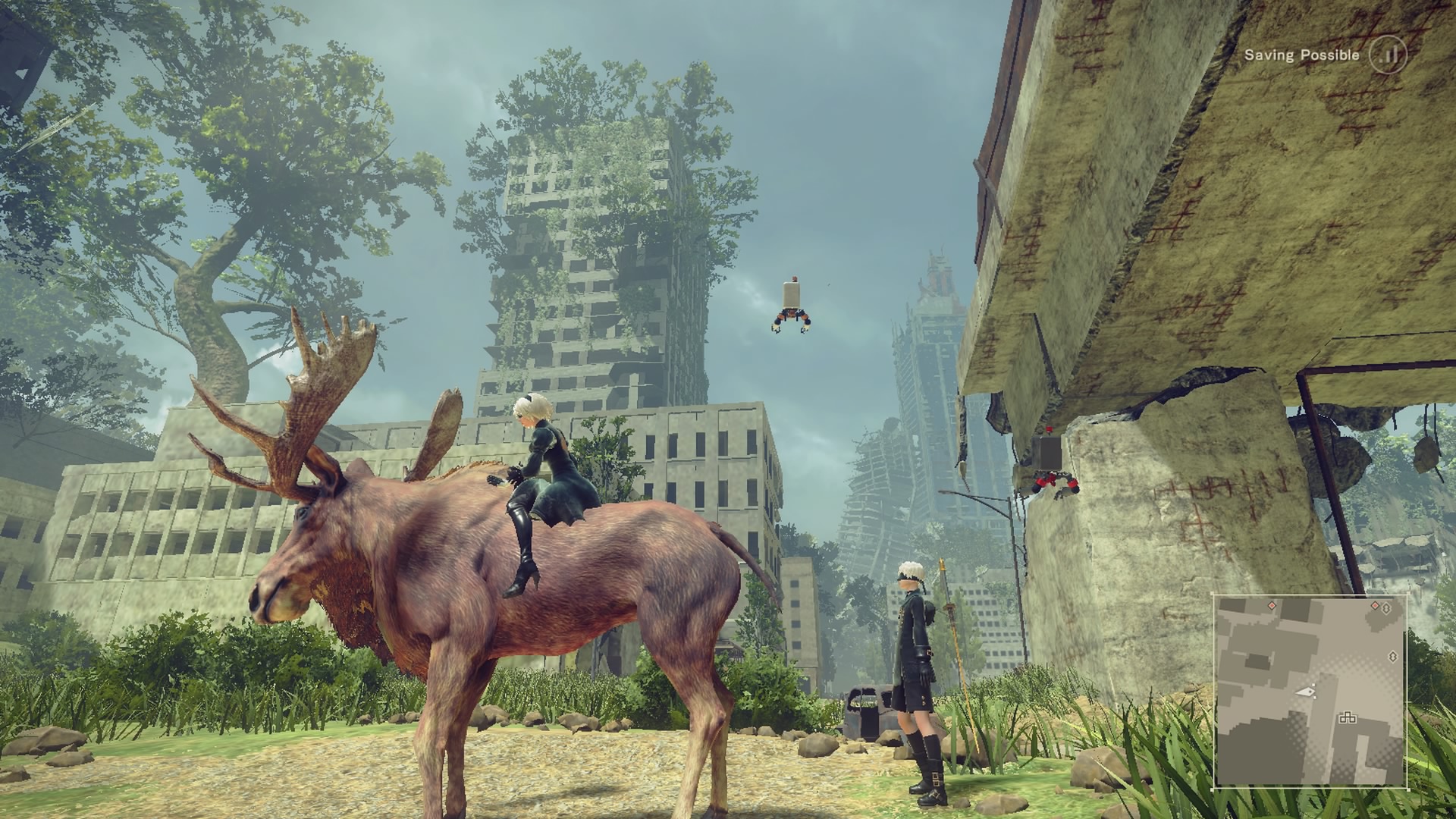 Apesar de parecer um hack’n slash, o jogo é um rpg de ação onde você tem que interagir em um mundo pós-apocalíptico onde definitivamente, nada é como parece ou como lhe é dito, as verdades do mundo de NieR Automata estão muito bem escritas, desenvolvidas e escondidas ao longo do jogo graças ao trabalho excepcionalmente carinhoso de Yoko Taro, que exigiu da equipe de produção um sistema totalmente alternativo e melhor do que o NieR original, alternando em momentos de exploração, combate, coleta e combate aéreo.