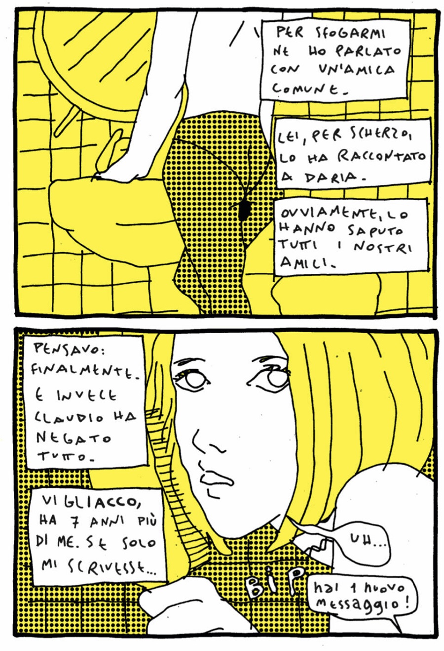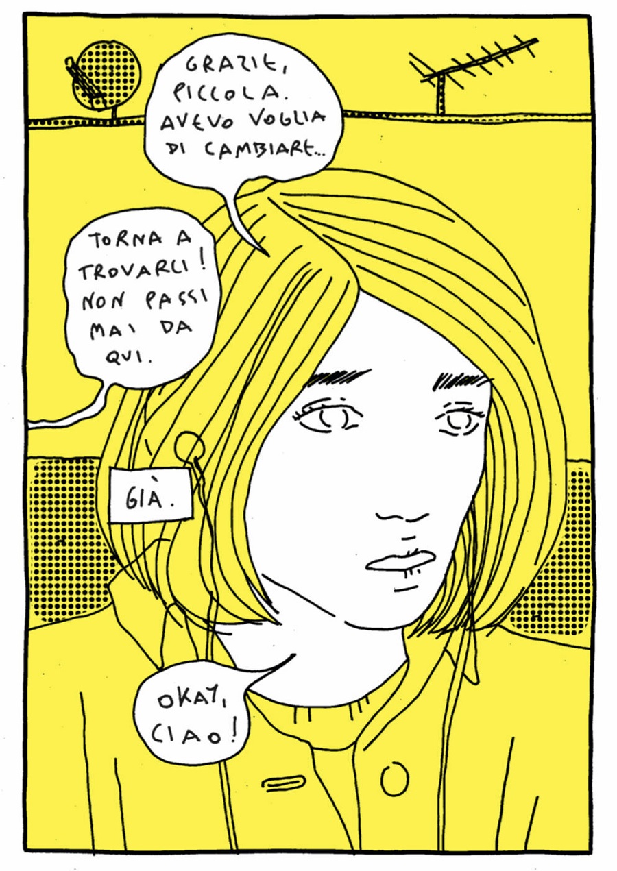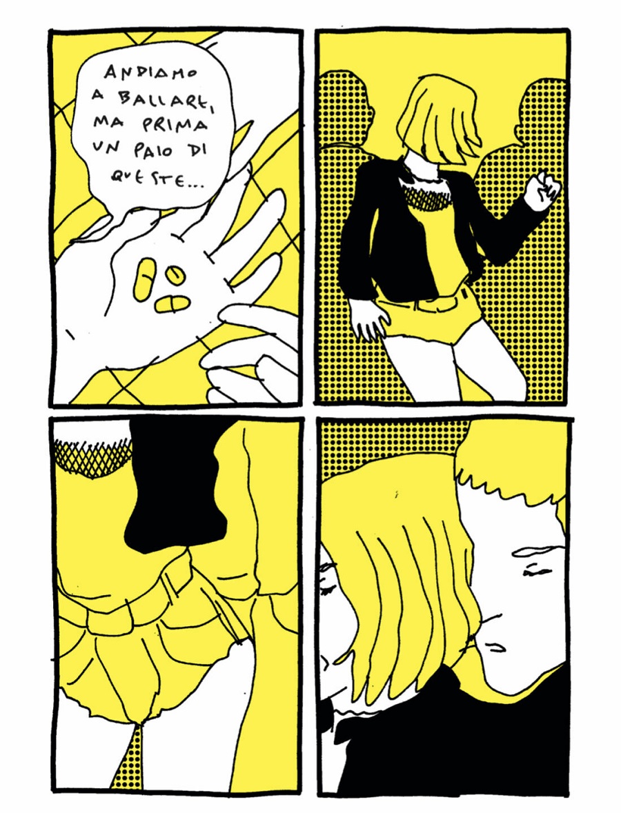 No quadrinho, corpos muito brancos sobre um fundo amarelo brilhante e o roxo escuro da memória com o preto mais escuro que existe. Com essas paletas de cores, Josephine Yole Signorelli nos leva em sua história mais pessoal e humana, quando a quadrinista ainda era P. Uma época de disforia, transfobia, automutilação misturada com uso desenfreado de drogas, sexo mais explícito e bullying da puberdade.