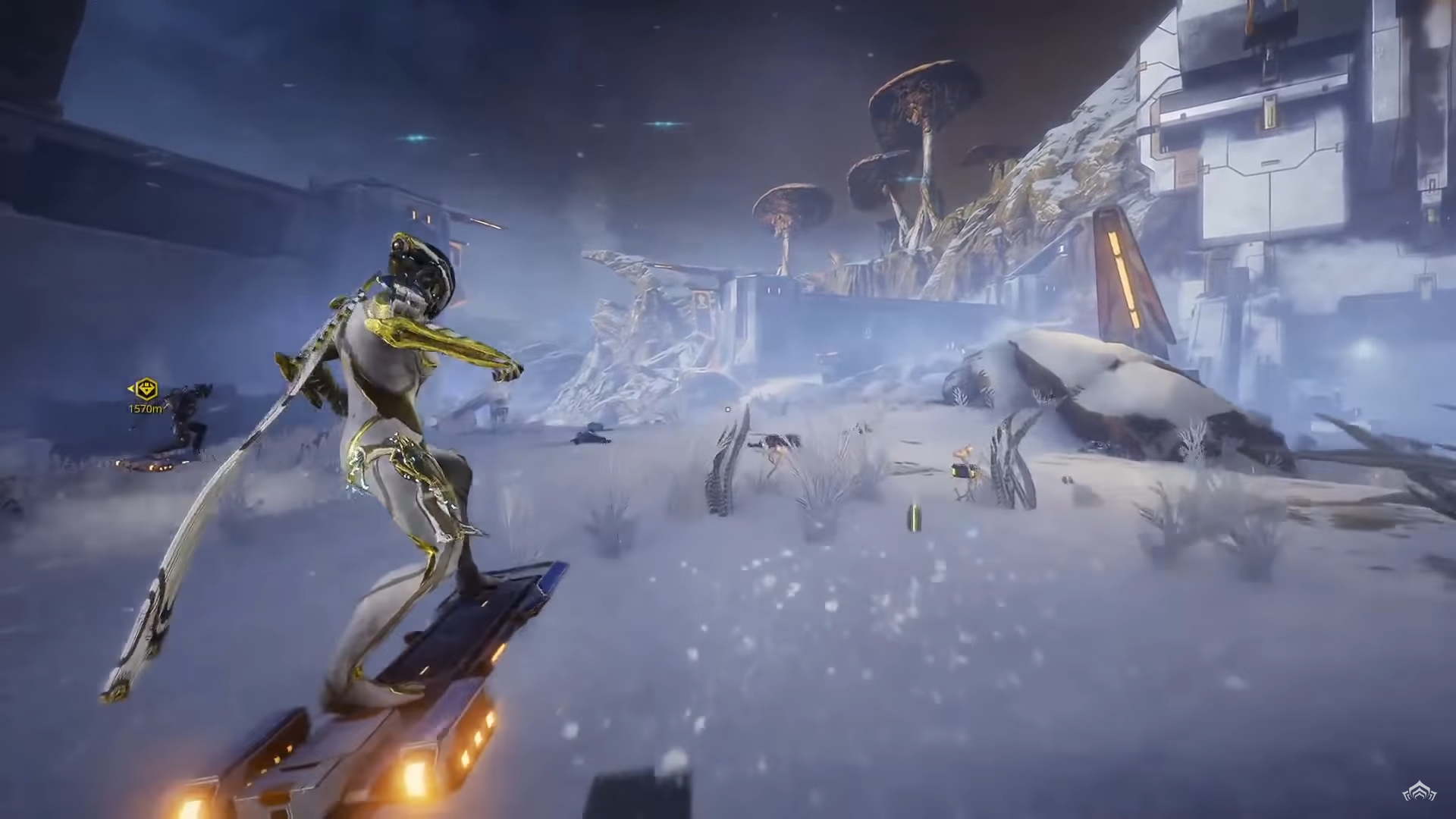 Na superfície, temos o mapa “The Orb Vallis” onde, além das mecânicas de waypoint para missões e o novo sistema de caça (que parece substituir a pesca de Cetus), foi apresentado o “Bondi K-Drive” que é um hoverboard que ajuda bastante o player a se locomover pelo mapa.