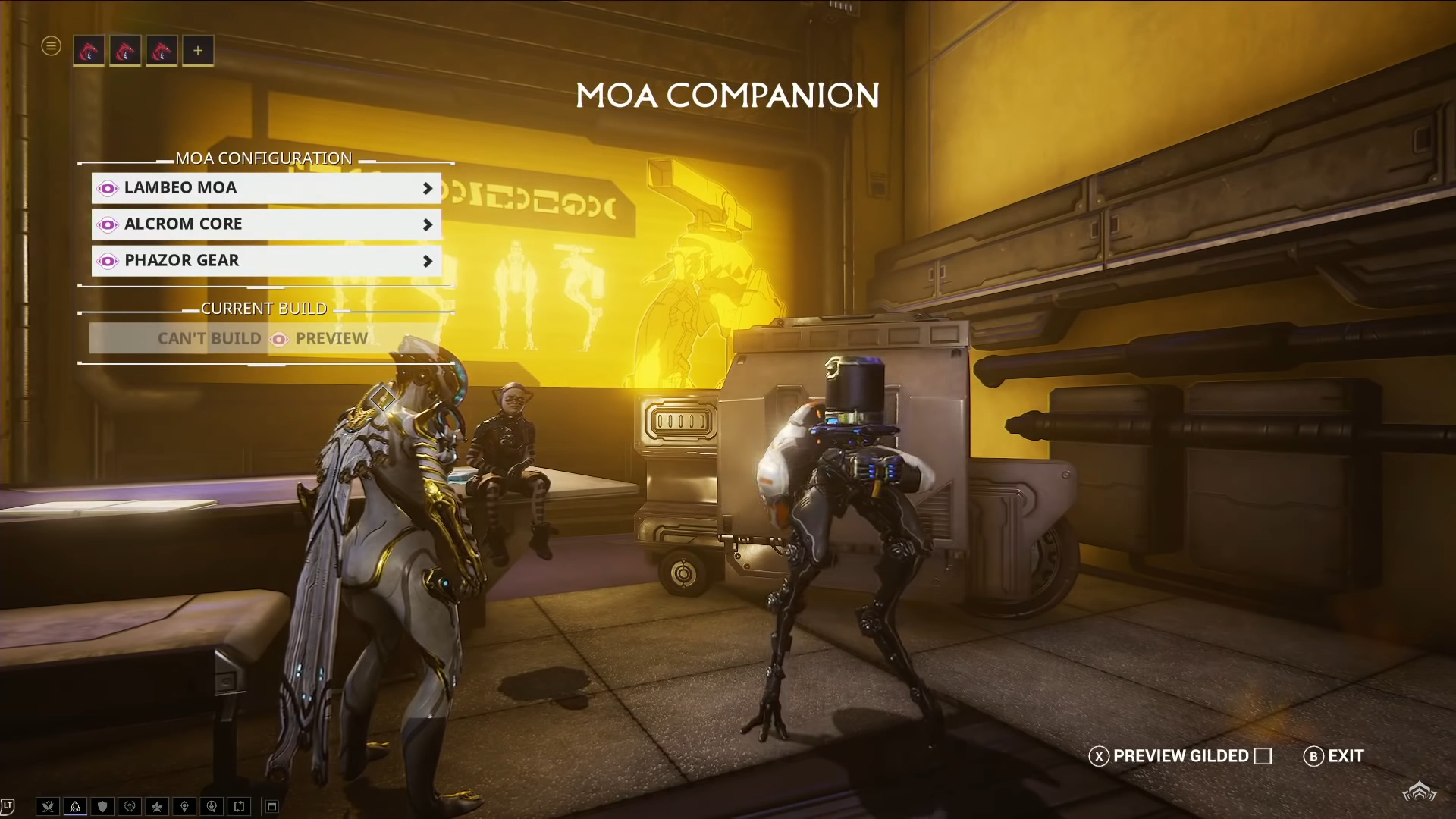 Além disso outros anúncios feitos fora do próximo Prime Vault que terá a Nyx e o Rhino assim como pacotes de acessórios. Novas skins deluxe de Warfranes, armamentos e pets também foram mostradas mas todas em fase de desenvolvimento sendo a maioria ainda em fase de conceito. Dois novos Warframes, o Renevant e a Garuda também foram anunciados.
