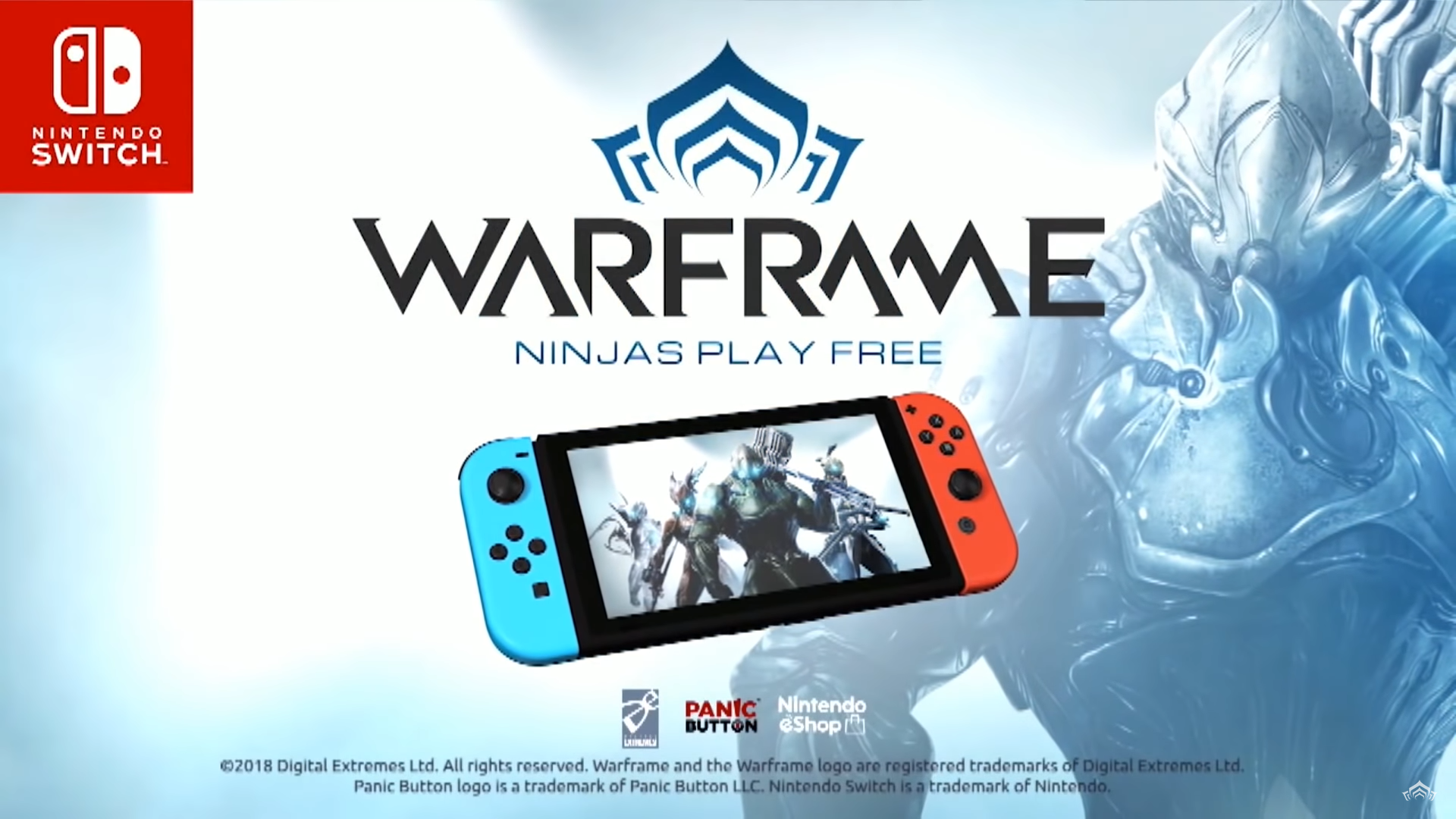 Podemos começar com o anúncio da chegada do jogo a mais uma plataforma, o Nintendo Switch! Em parceria com a produtora Panic Button a DE estará trazendo o Warframe no mesmo formato F2P para o novo console da Nintendo ainda sem uma data exata prevista.